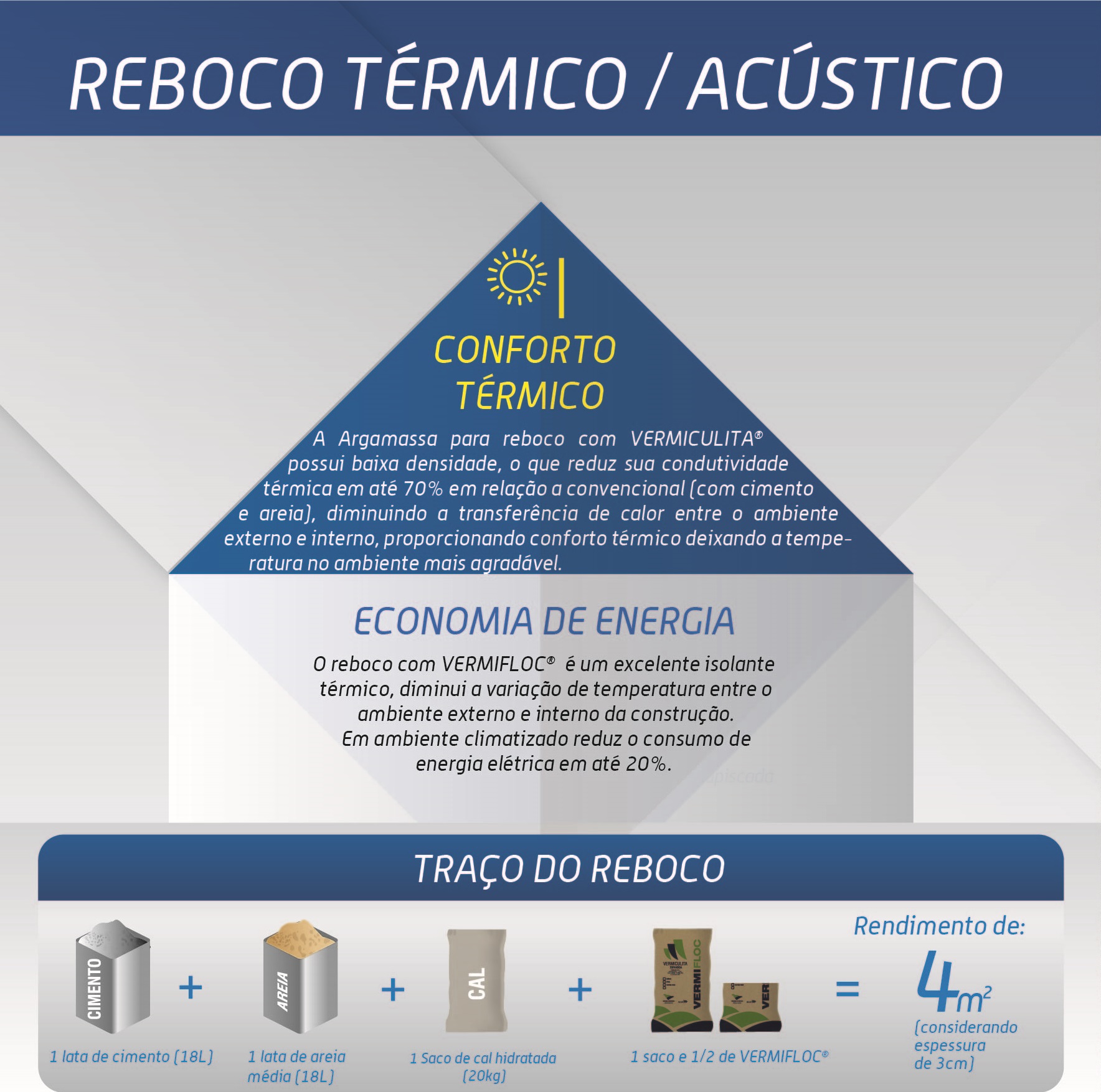 Produto à base de Vermiculita Expandida impregnada com hidrofugantes e elastômeros que confere Isolamento Acústico a paredes e lajes convencionais.